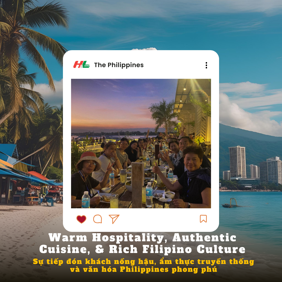 Lý do 4: Lòng hiếu khách nồng hậu, ẩm thực chính thống & văn hóa Philippines phong phú: Người Philippines nổi tiếng thế giới với bản tính nồng hậu và hiếu khách—bạn sẽ cảm thấy như ở nhà ngay từ ngày đầu tiên. Thưởng thức những món ăn Philippines thơm ngon, đậm đà hương vị và nguyên liệu tươi ngon. Hòa mình vào những lễ hội sôi động, âm nhạc và truyền thống, mang đến cho bạn trải nghiệm học ngôn ngữ thực sự khó quên.